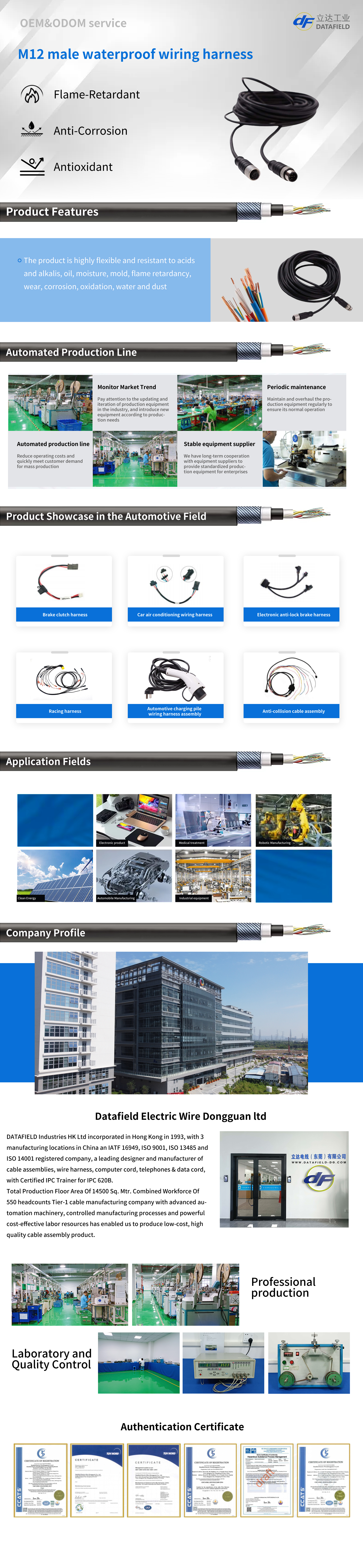M12 male waterproof wiring harness